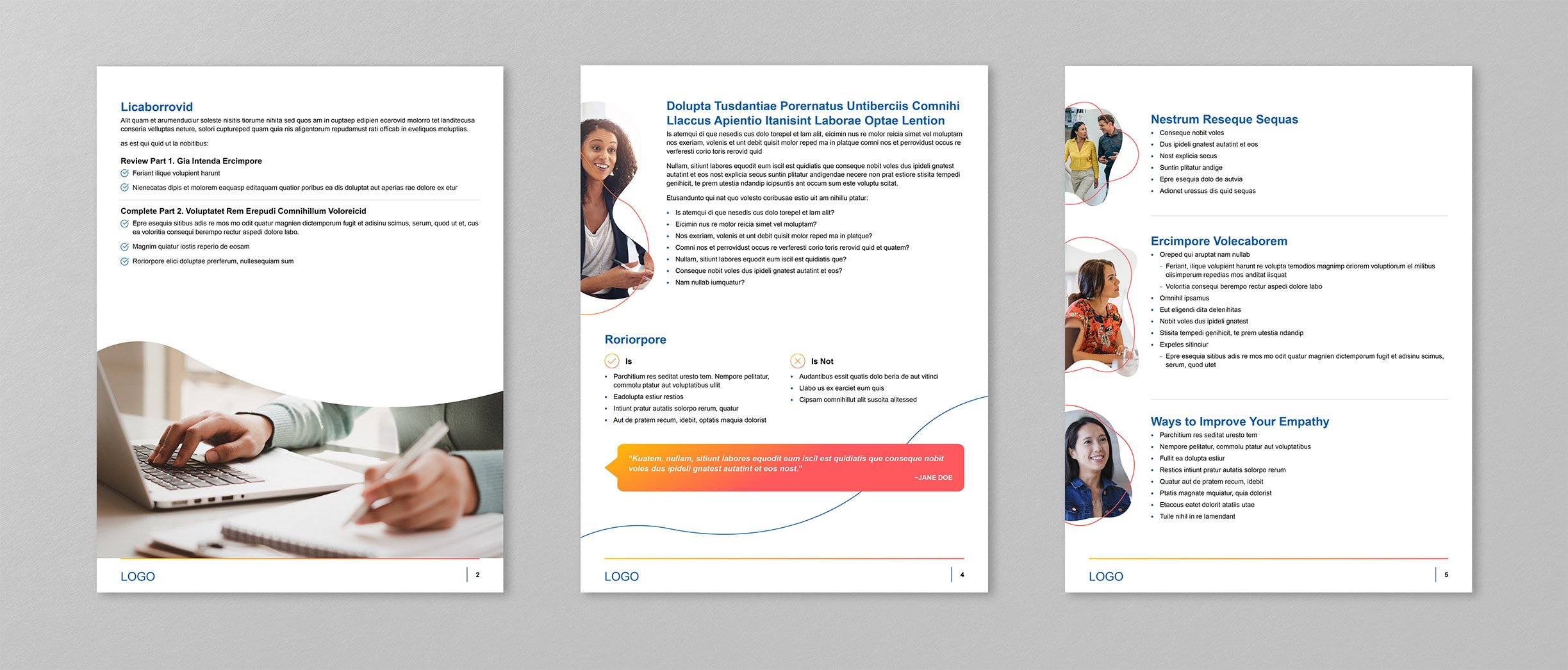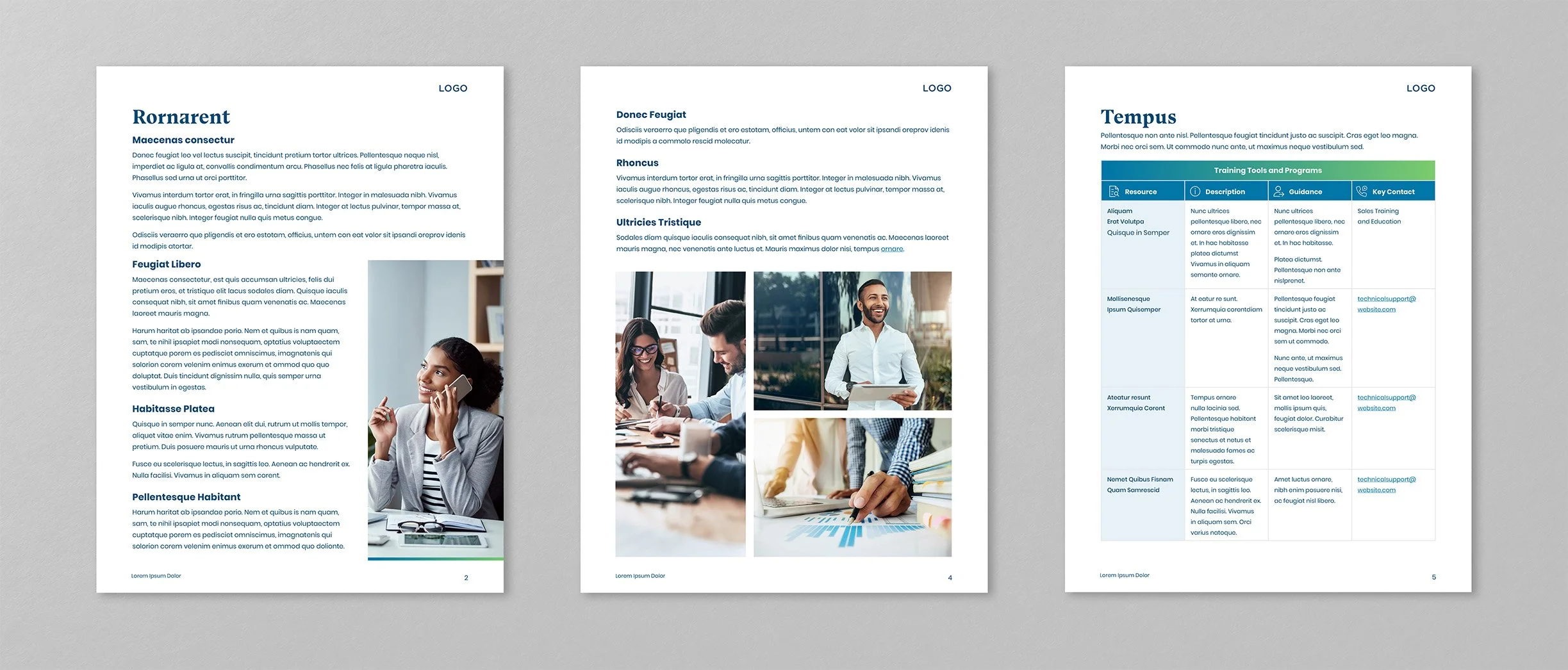 When developing new initiatives, it's essential to ensure that all materials strictly adhere to the product or company’s brand guidelines. Since these pieces are often designed for digital use, they can incorporate various interactive elements such as a table of contents, navigation, hyperlinks, forms, buttons, and rollovers.